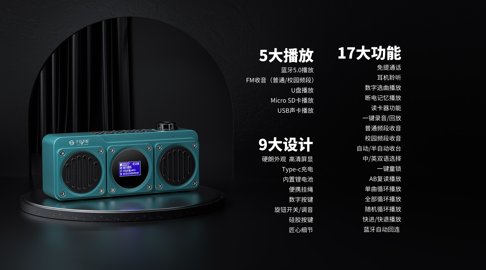 藍(lán)牙、FM收音、Micro SD卡、U盤(pán)、USB播放, 靈活多用。