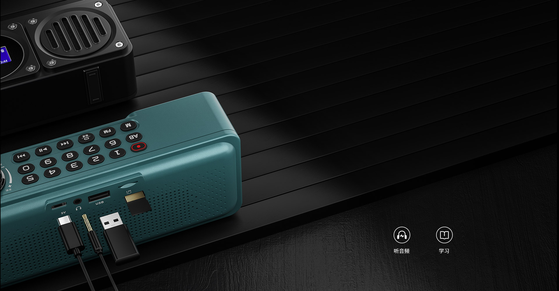 支持U盤(pán)與Micro SD卡,即插即播。還支持讀卡功能。