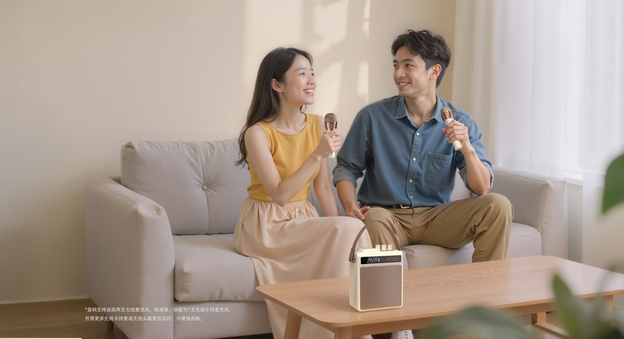 支持兩支無線手持麥克風(fēng)同時使用,合唱互動更盡興;