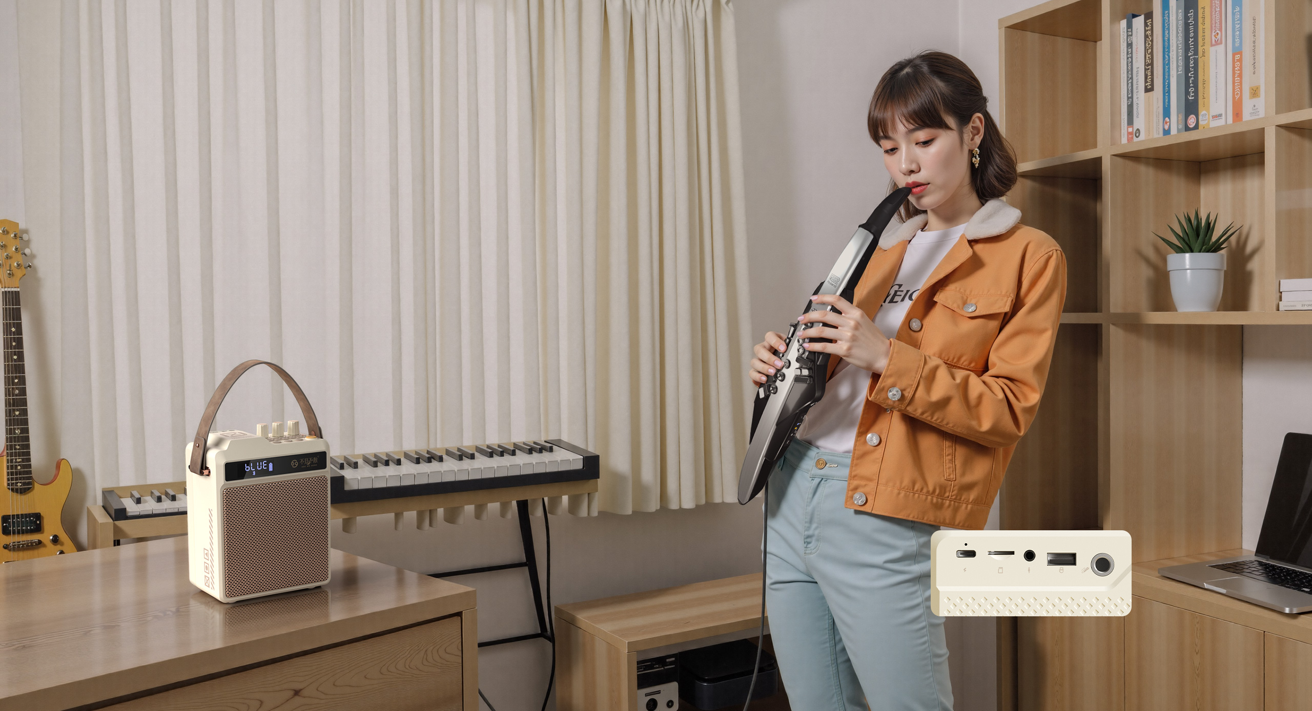 內(nèi)置高保真音響,無論是彈奏吉他、吹奏管樂,