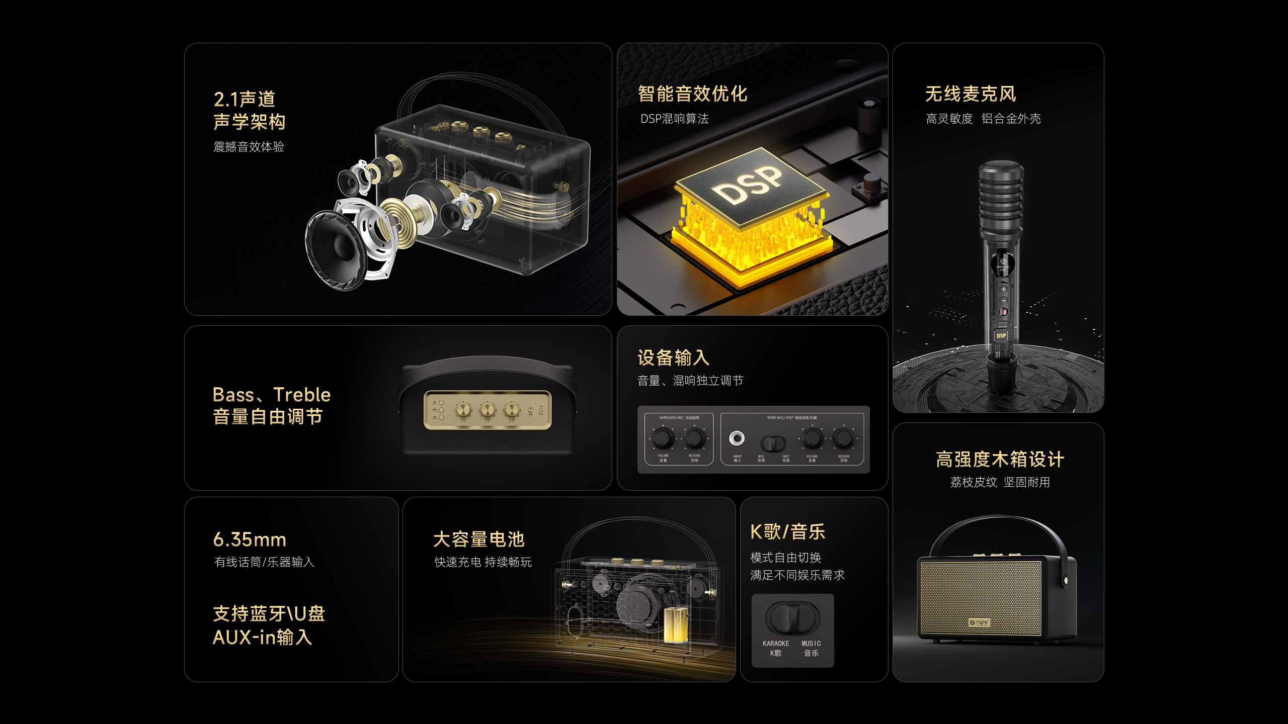 內置DSP混響與嘯叫抑制算法,不論是K歌