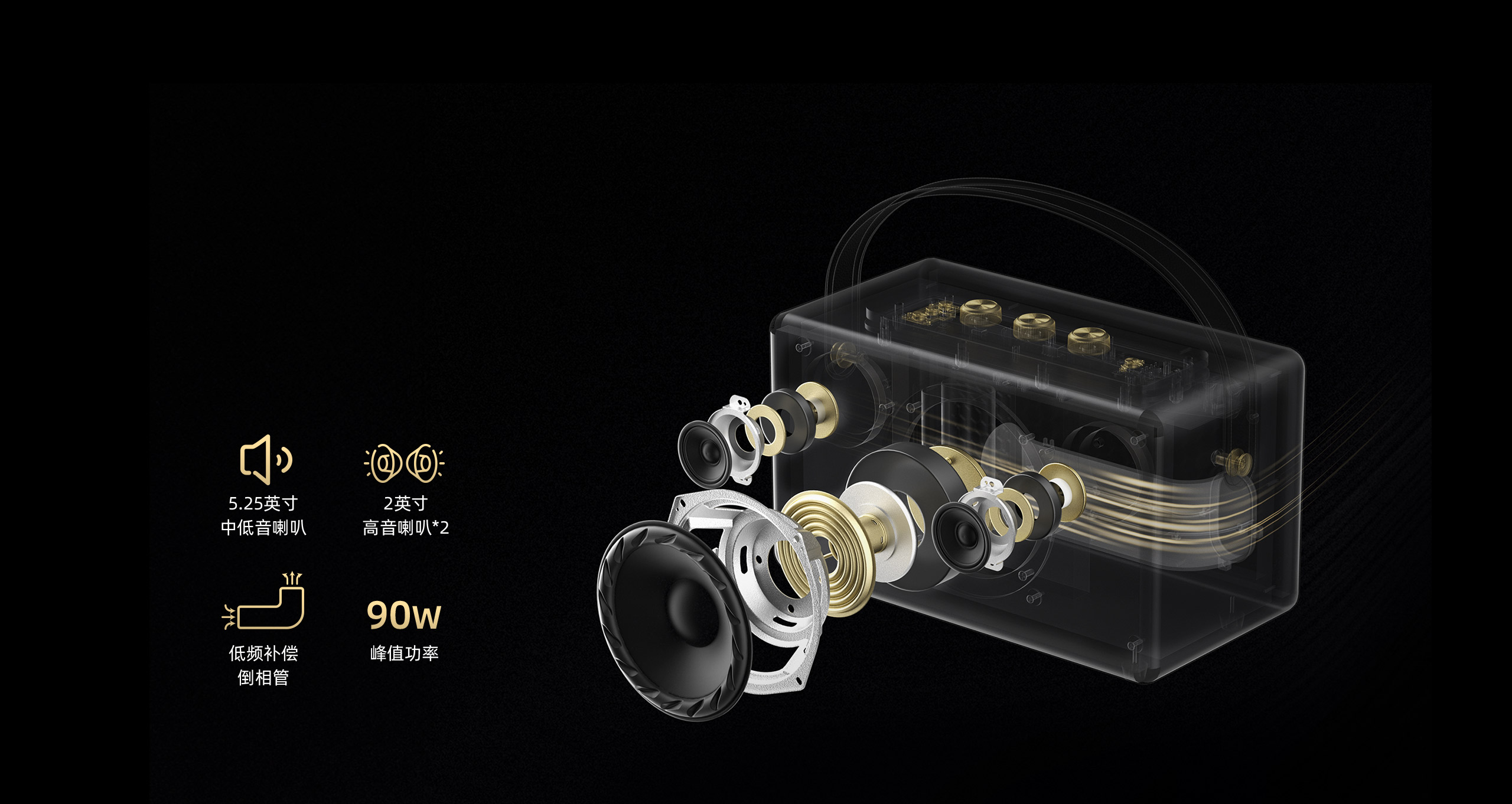 釋放震撼聲場。搭配低音增強倒相管設計,低音更