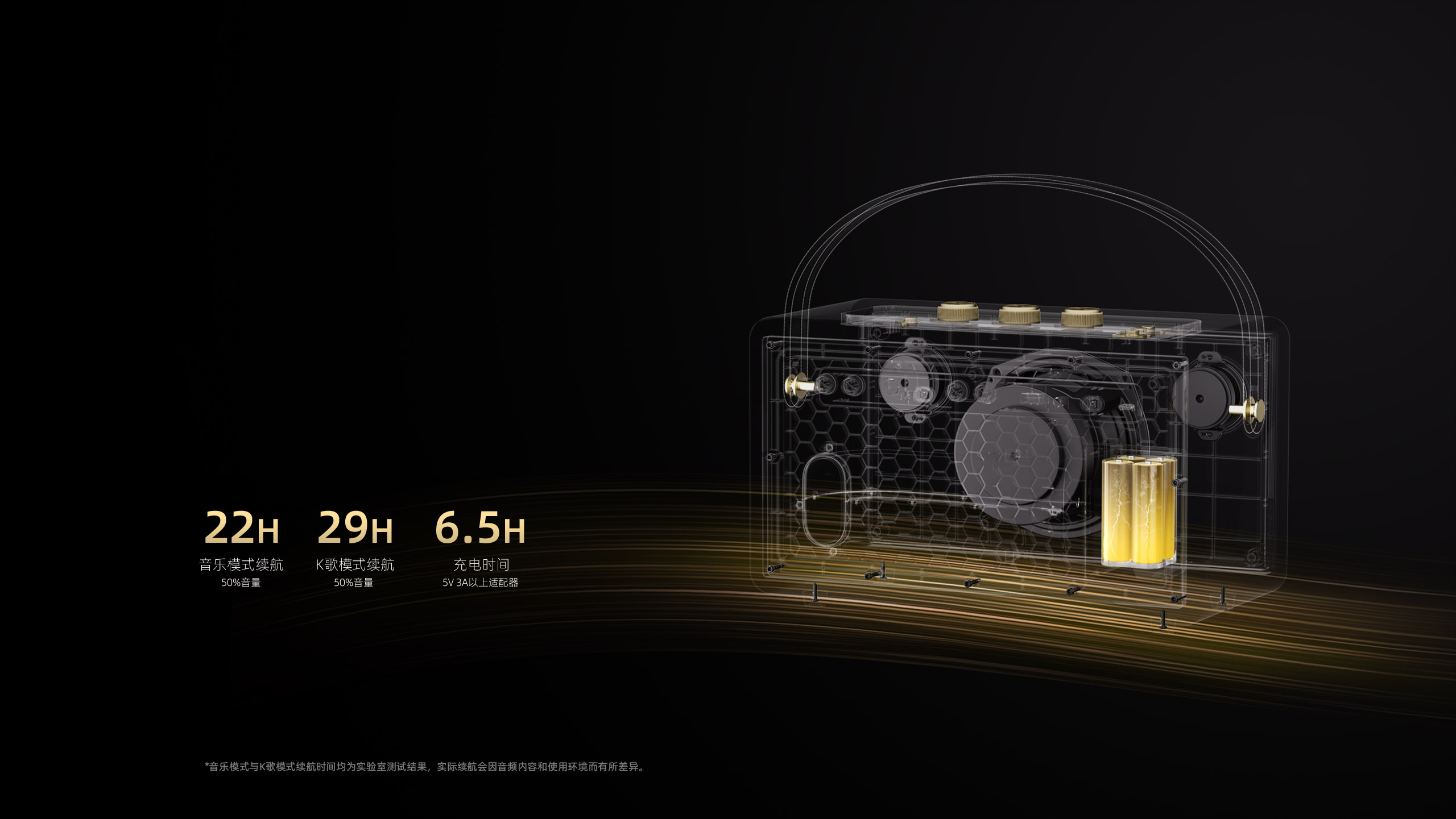 可任意選擇K歌和聽音樂模式,K歌模式下聲音飽滿大聲富有感染力;
