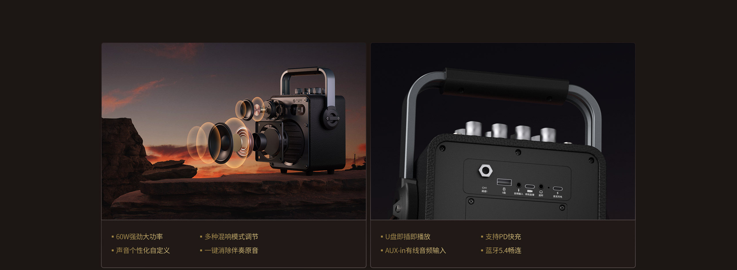 小體積,大音量。突破腔體限制的彈唱歌王,輕巧、便攜、聲音響亮。