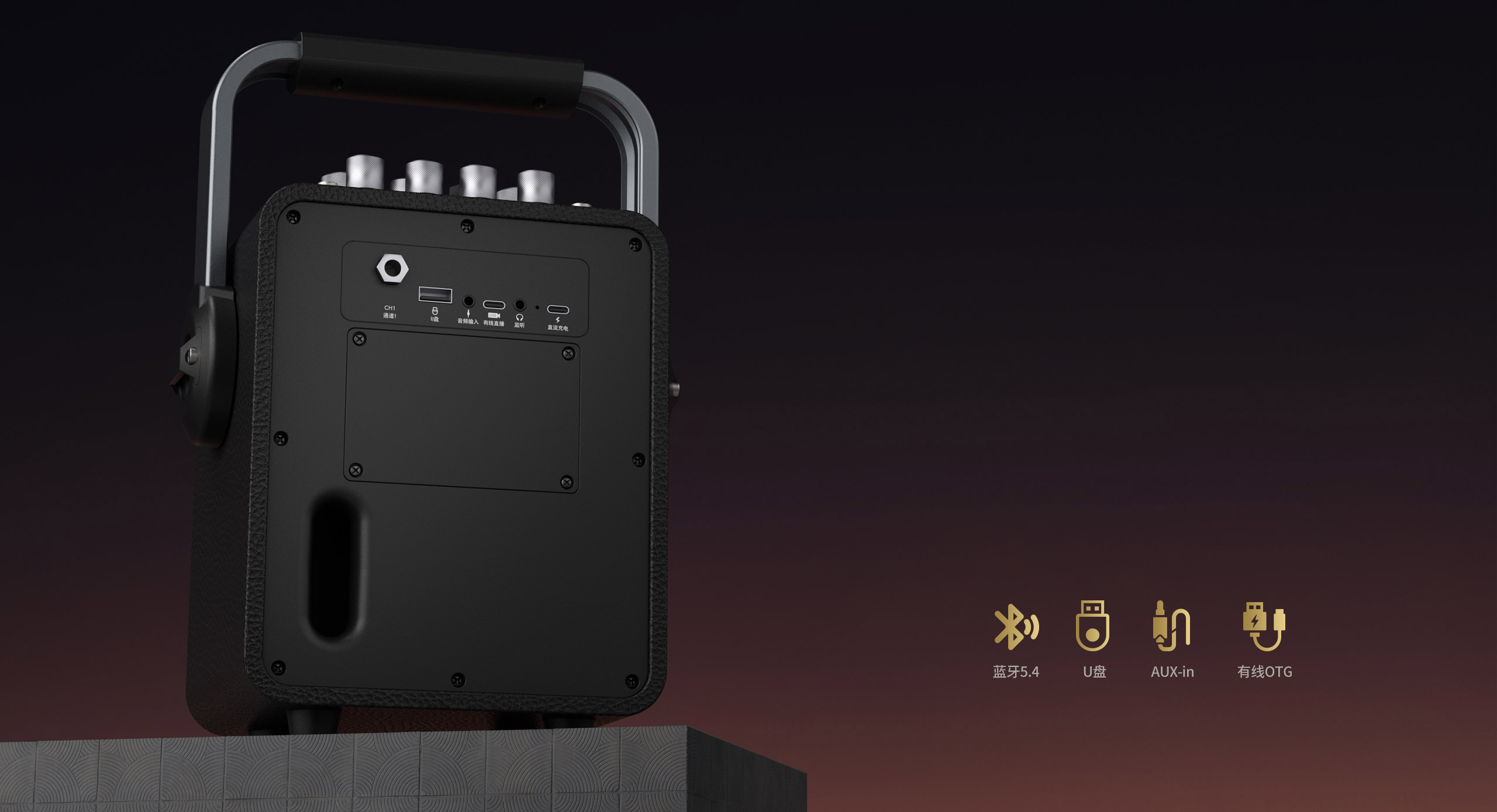 涵蓋藍牙5.4、U盤、AUX-in、有線OTG,4種音頻連接播放方式。