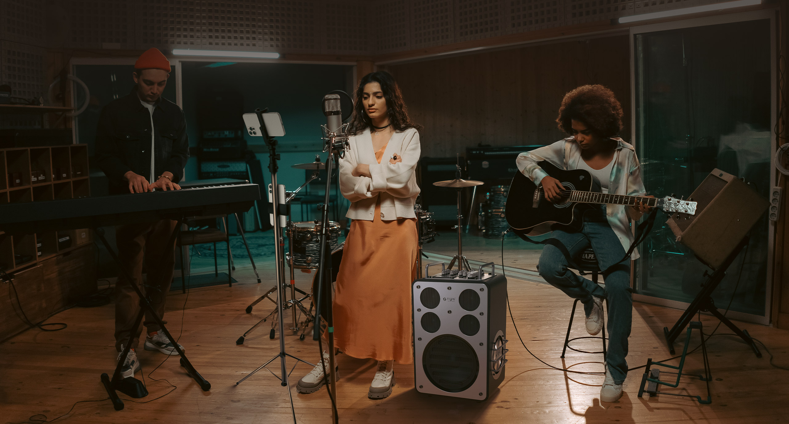 兩種空間音效,自在適用多種演藝場景需求。音樂模式,低音更加澎湃飽滿,音樂聆聽更沉浸。K歌模式,人聲更加清亮,外加120dB大聲壓,戶外彈唱表演更震撼。