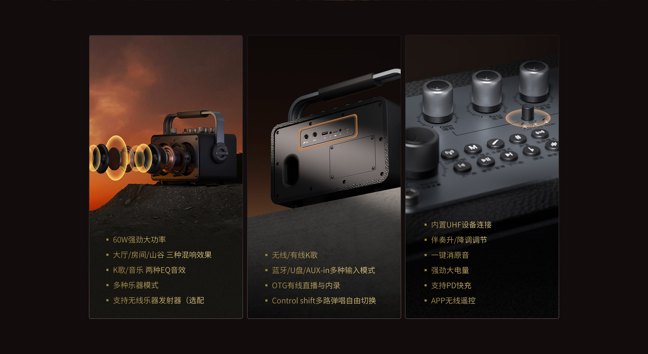 小體積,大音量。突破腔體限制的彈唱歌王,輕巧、便攜、聲音響亮。