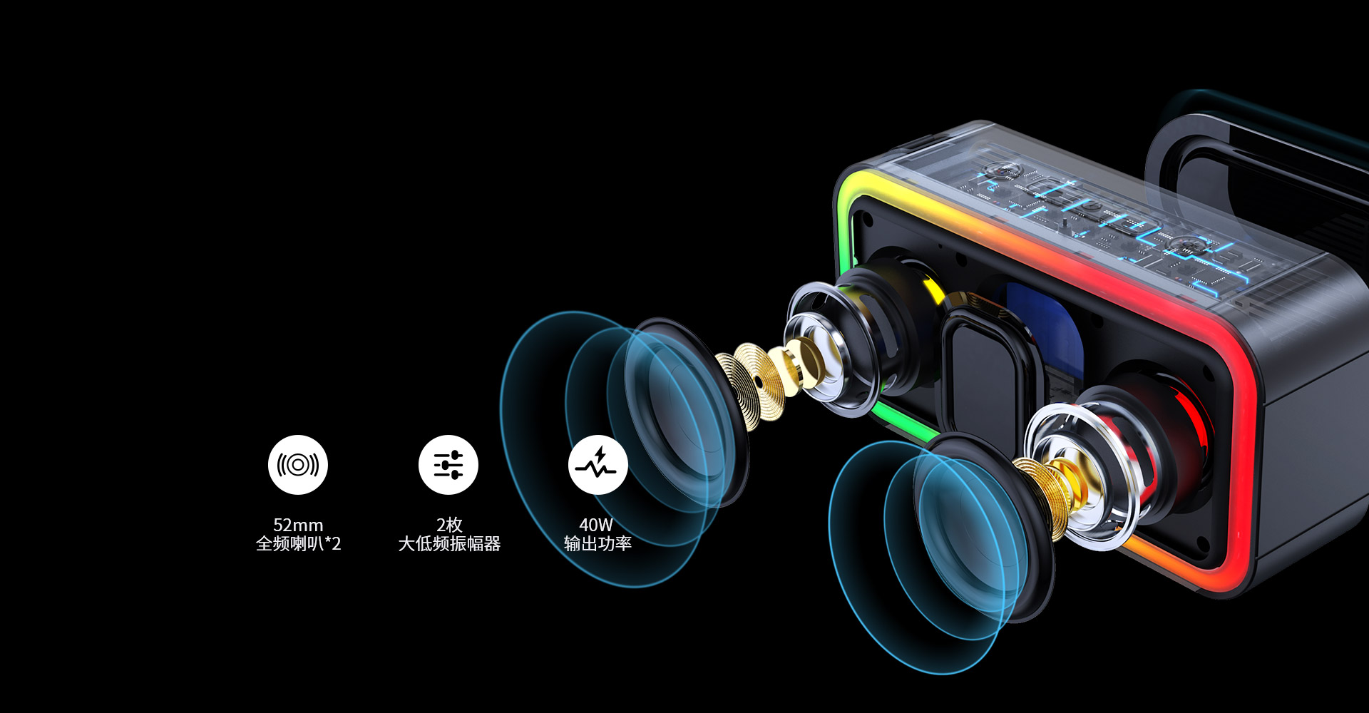 40W輸出功率,聲音飽滿,細節豐富。
