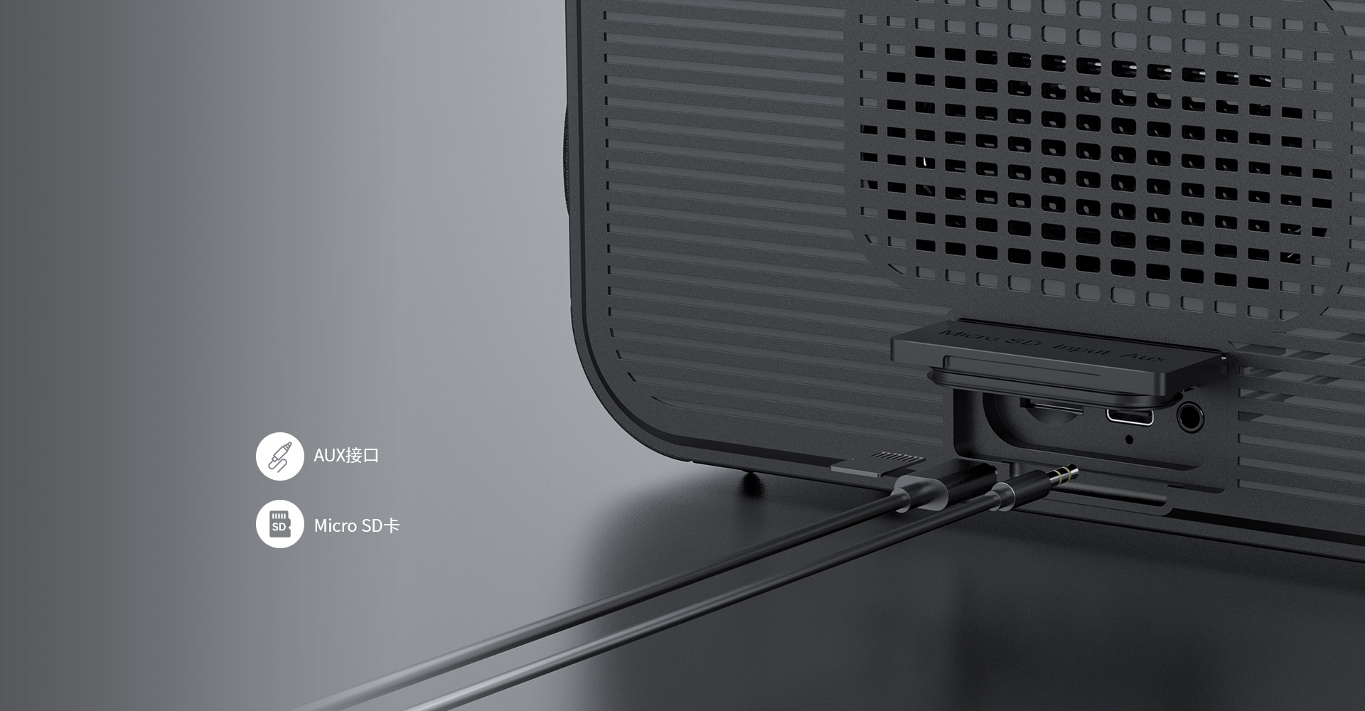 支持Micro SD卡與AUX音頻線,即插即播,方便好用。