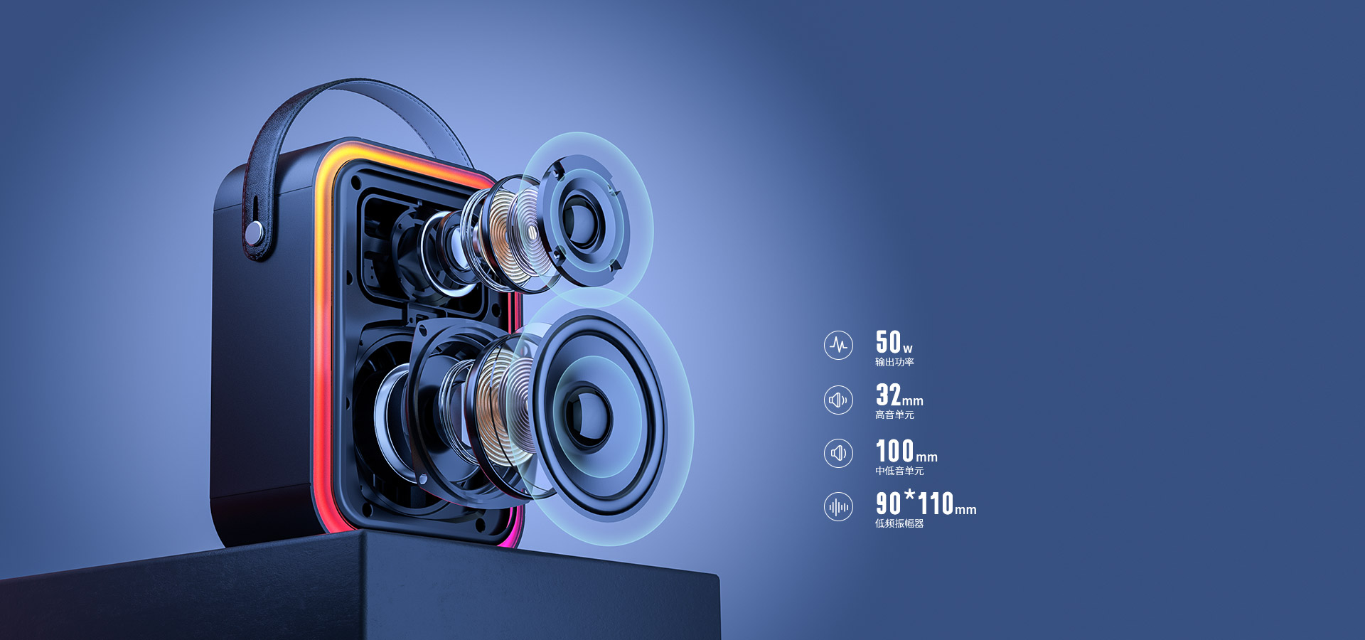 高音低音完全沒壓力,提供強(qiáng)勁有力的360°震撼音效。