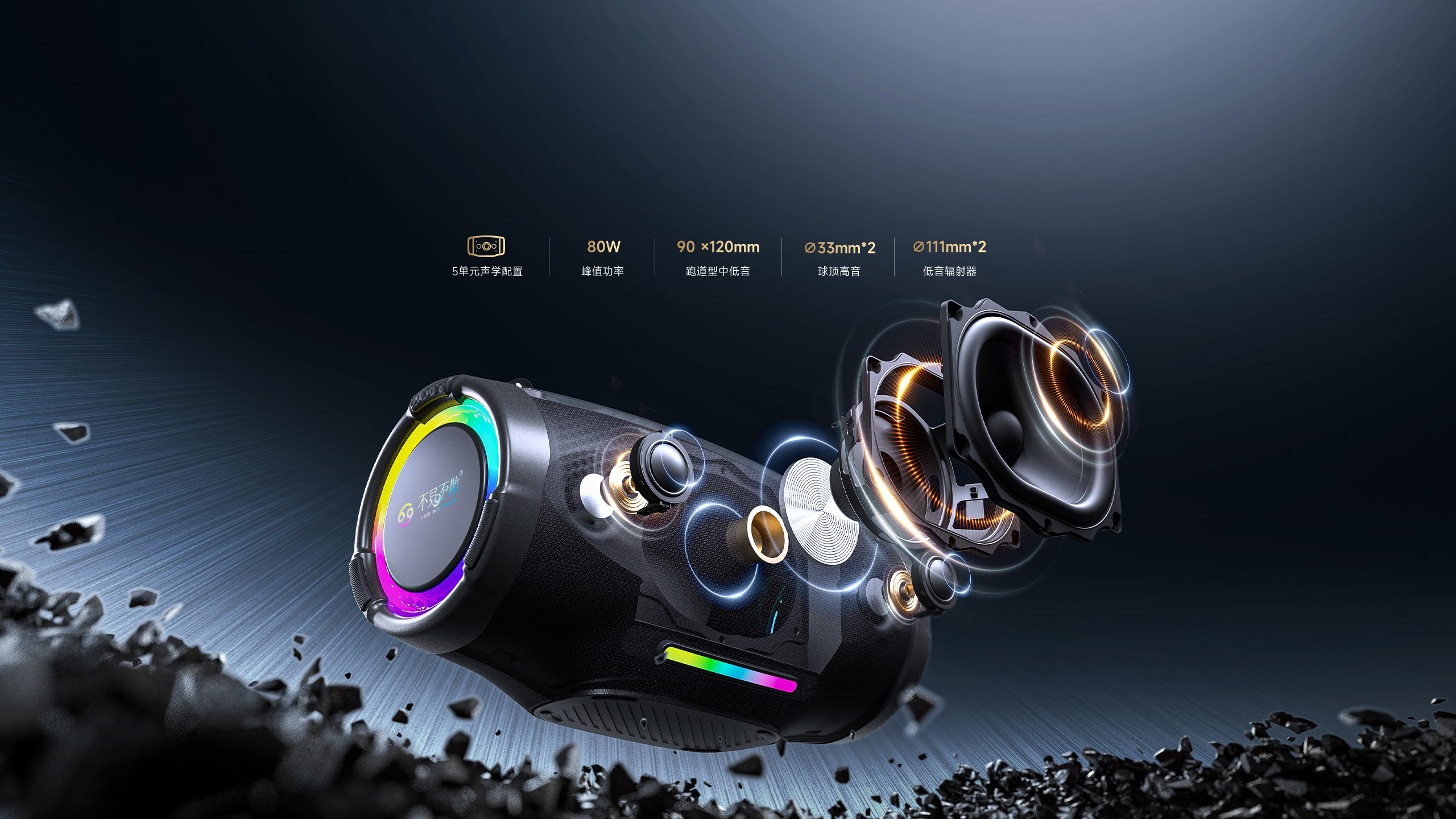 搭配雙低音輻射器,低頻澎湃有力,高頻通透清晰,聲音立體飽滿,震撼全場