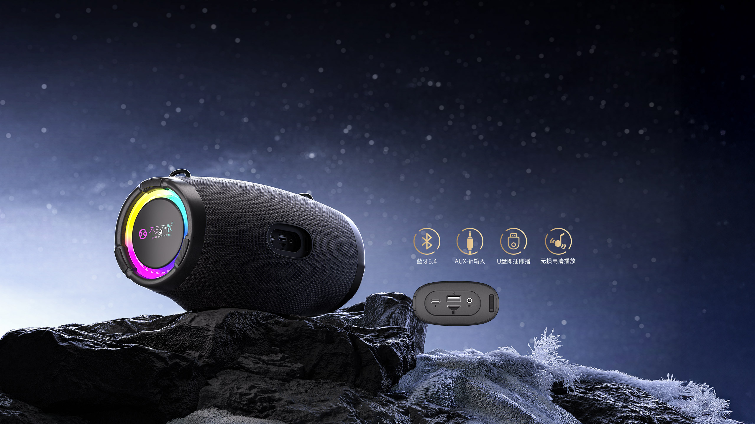 支持藍牙5.4、U盤、TF卡(Micro SD)、AUX音頻輸入,