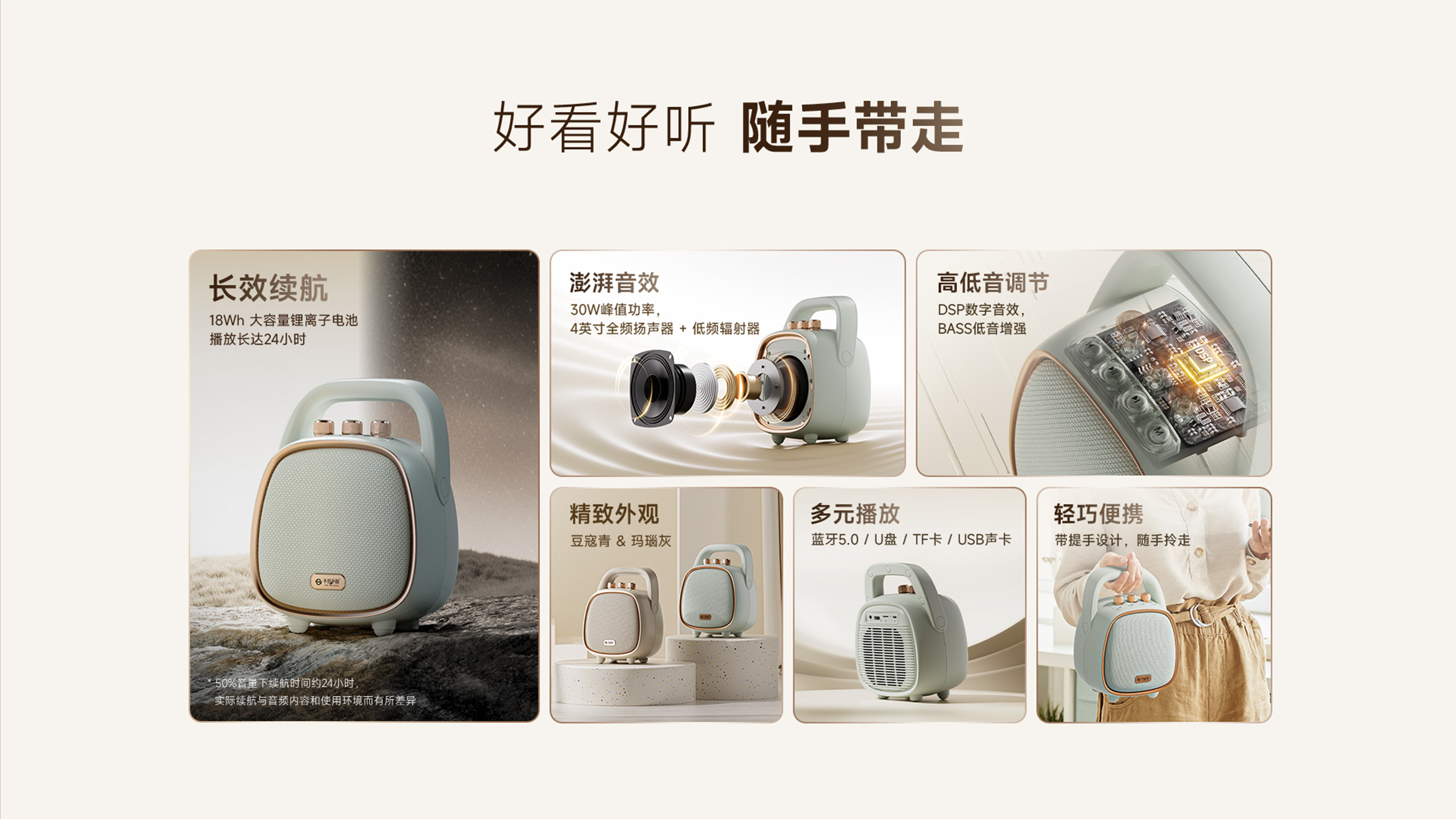 內置18Wh 大容量鋰離子電池,強勁續航可滿足長時間播放,